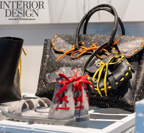 這場跨界合作以降低生產過程對環境的危害為共識,使用的廢棄橡膠材質都是環保再生橡膠,運用裁切多餘的橡膠邊、鞋底防滑膠塊轉變為手袋、手鐲上獨一無二的裝飾,前衛又俐落的設計大獲好評。